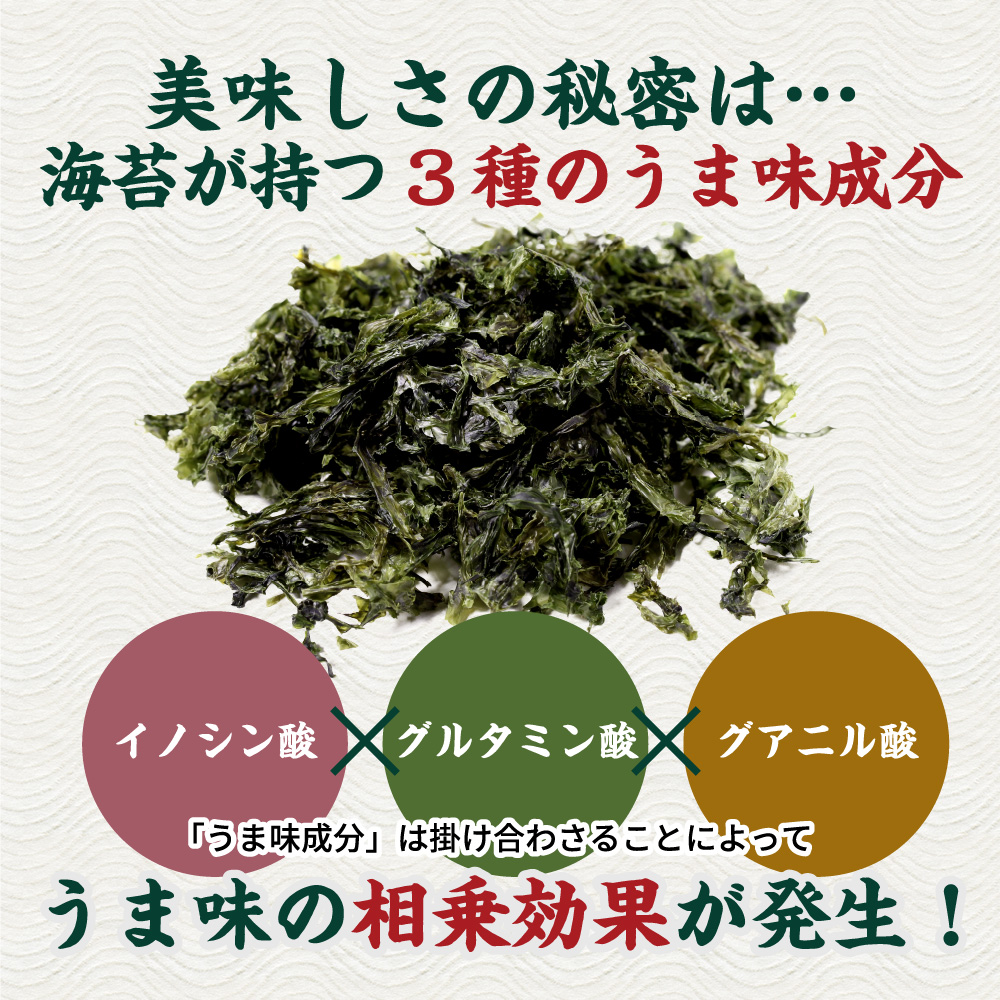 この3つのうま味成分を含む天然食品は海苔以外無いと言われるごくまれな存在です。